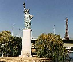 This minature copy of the Statue of Liberty is on a small island in the middle of the