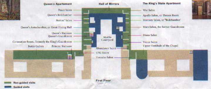 quarters of the king and queen, the Room of Hercules, and the Hall of Mirrors. The Hall of